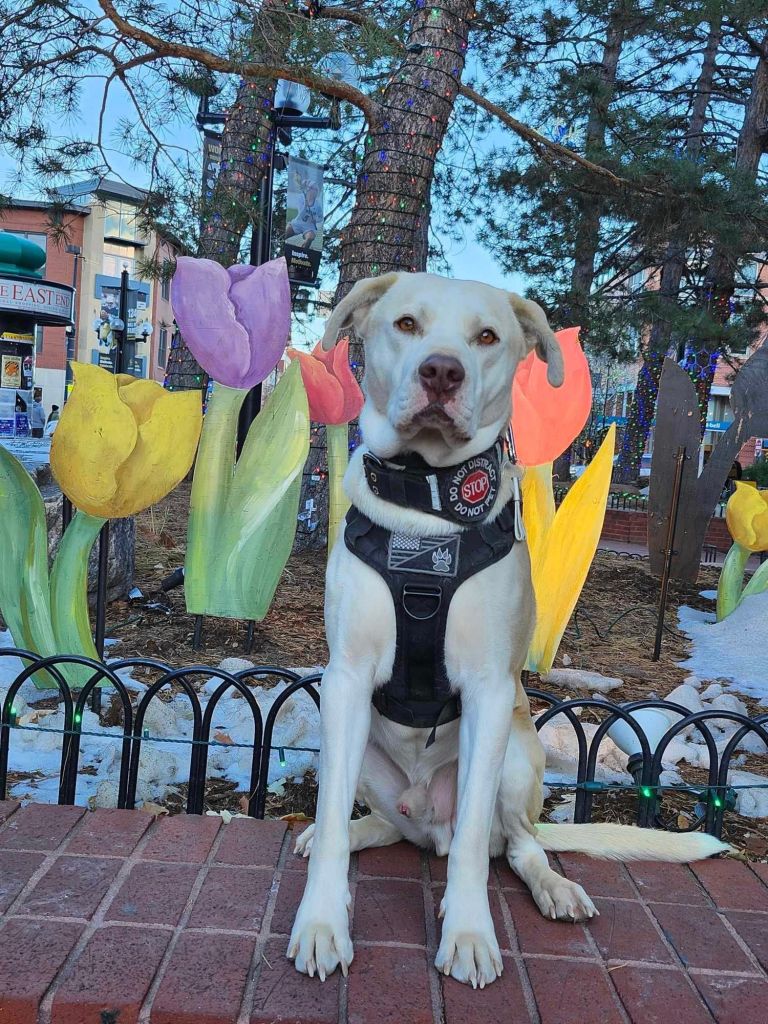 Casper is most known for his sensitivity to human emotions and the changes they go through. He is PTSD trained with the basis of distractionary work. He implements physical touch and a rather “in your face” presence to refocus his handler.